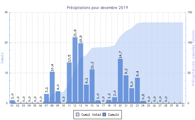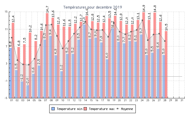 | 03 | -1.2 °C | 7.5 °C | 2.8 °C | 7.2 km/h (28.5 km/h) | NNE |